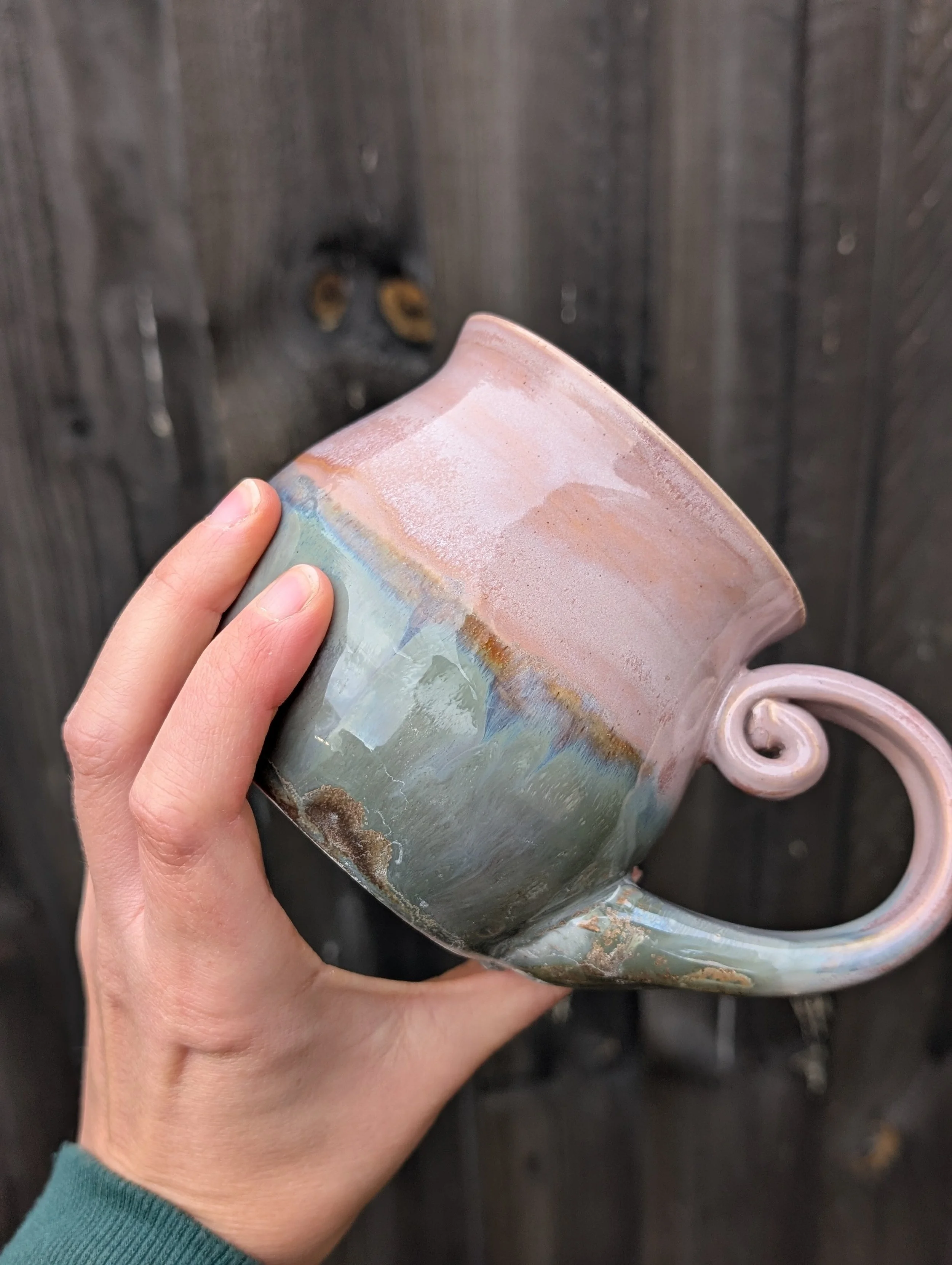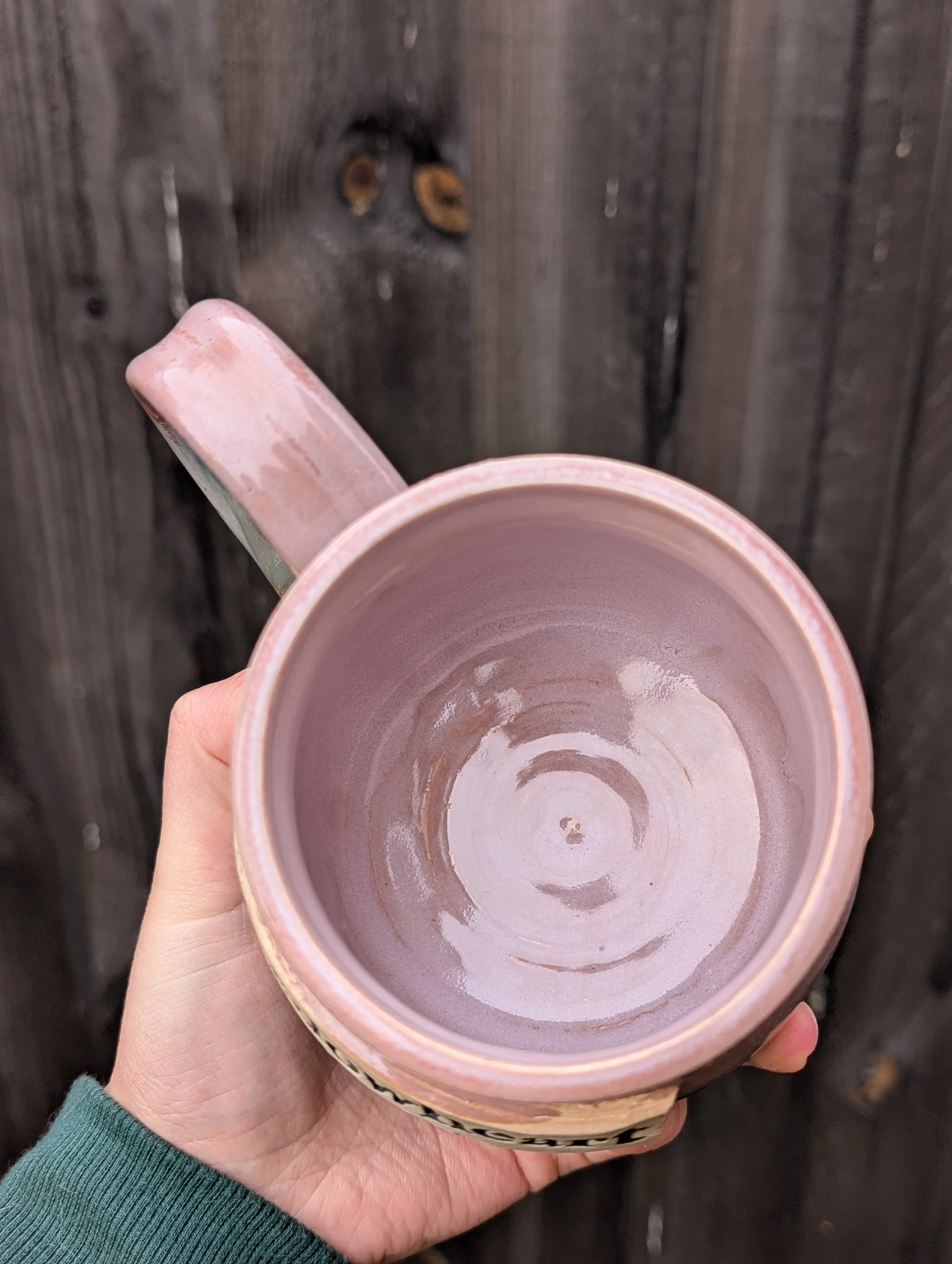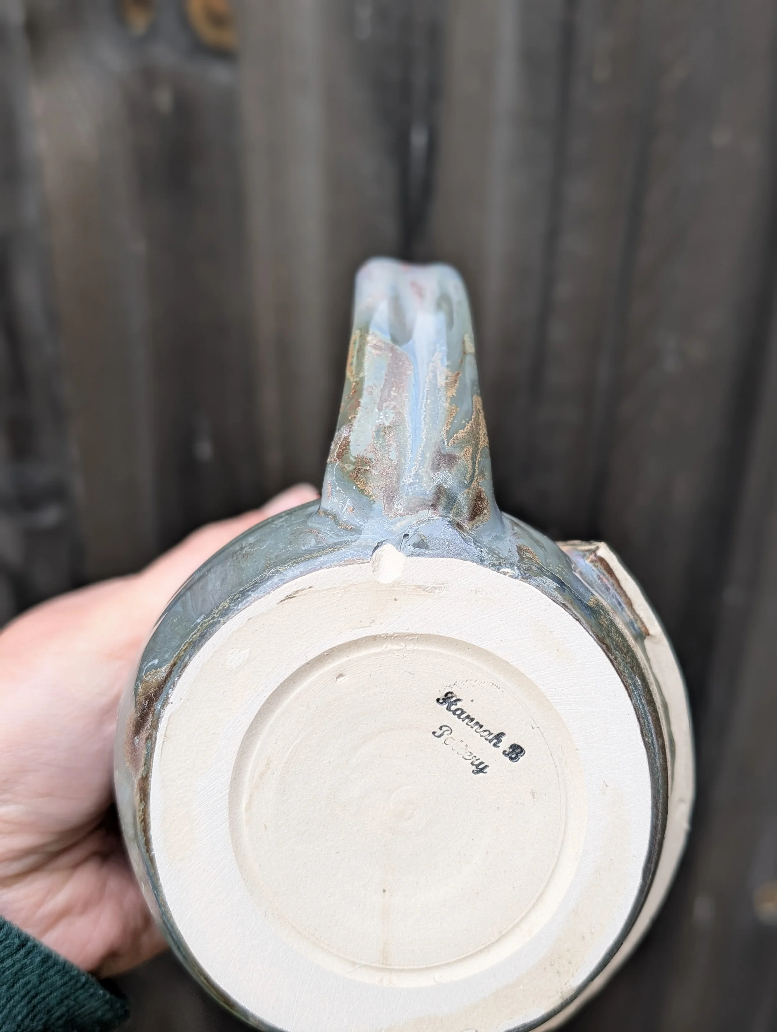 This mug is a second as there is a chip in the bottom where the glaze got stuck in the kiln. It doesn’t affect functionality and can be used as normal